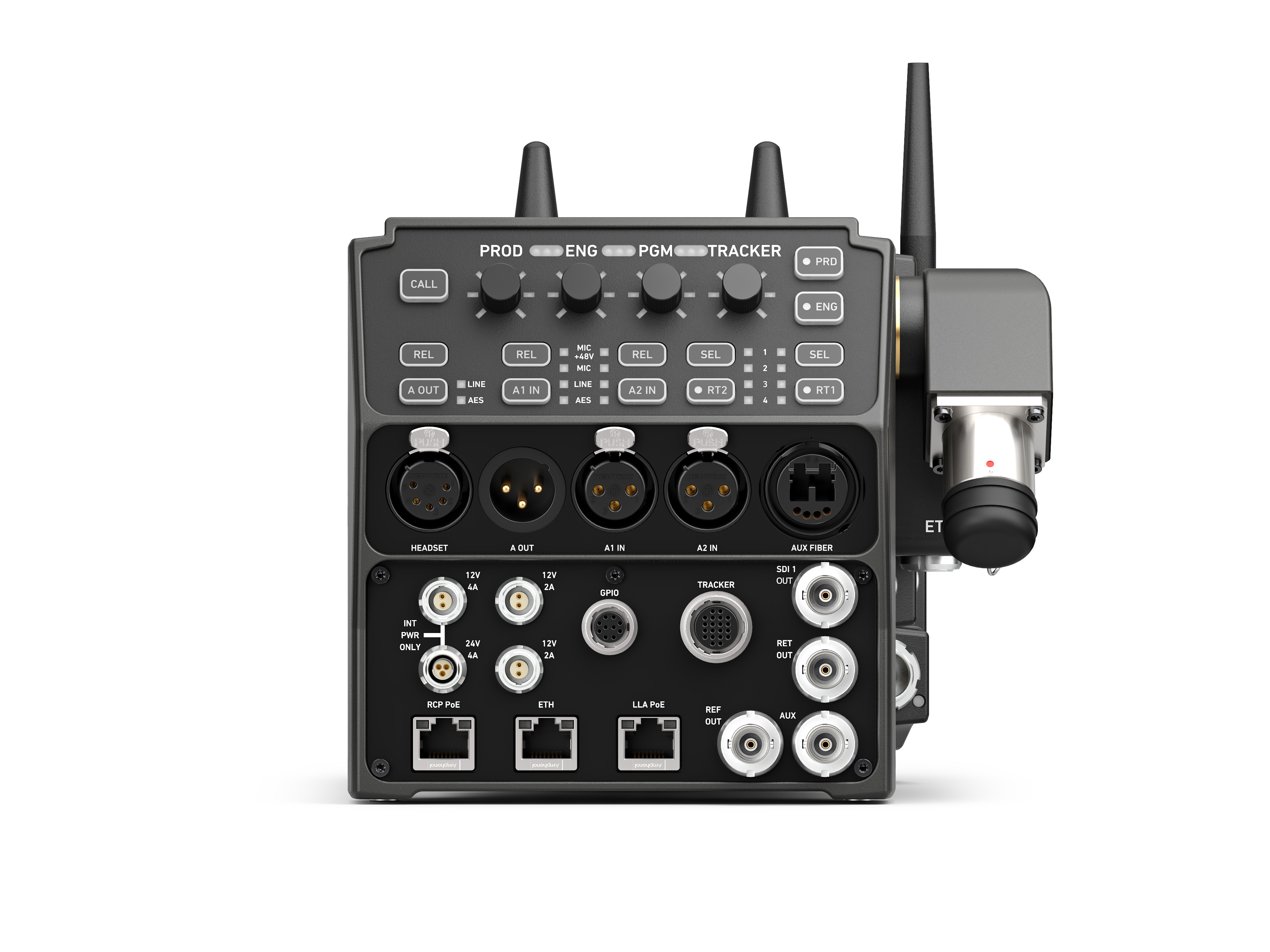 • Conexiones familiares y control intuitivo: Incluye interfaces estándar de la industria como SMPTE 311, intercom de 2 canales, 4 entradas de vídeo RETURN seleccionables, GPIO, TRACKER y conectividad de audio completa con salidas LINE o AES y entradas AES, LINE o MIC con alimentación phantom seleccionable de +48 V.