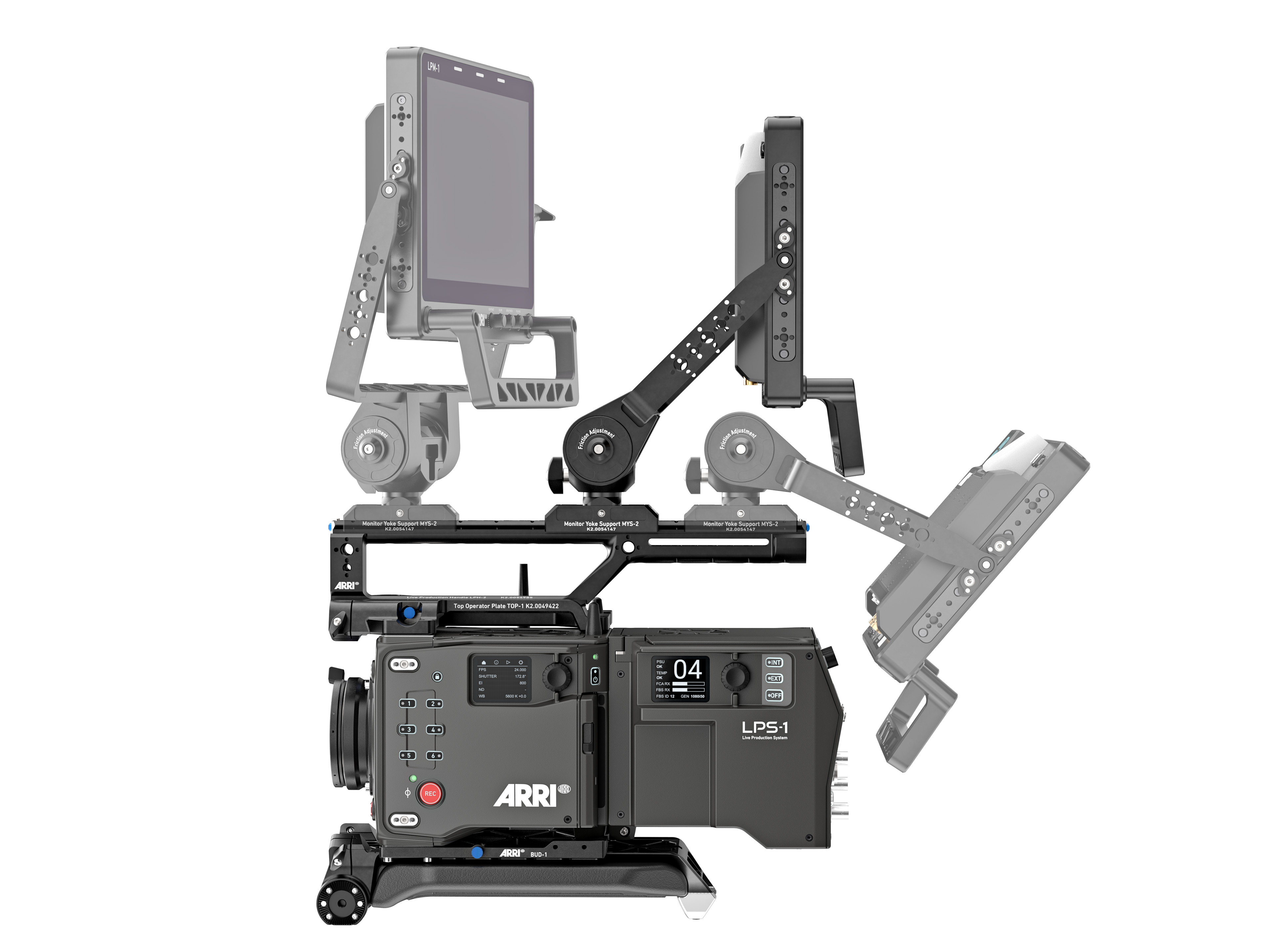 • Monitor Yoke Support MYS-1L: Soporta el ARRI Camera Control Monitor CCM-1 y permite un ajuste equilibrado de cuatro ejes con una sola mano, bloqueable en cualquier posición.